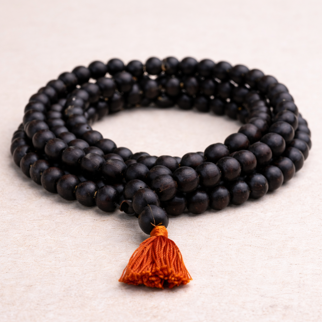 Karungali Mala is made from rare Karungali wood, known for its strong spiritual properties. It helps in grounding energy, protecting from evil eye, and improving mental stability.